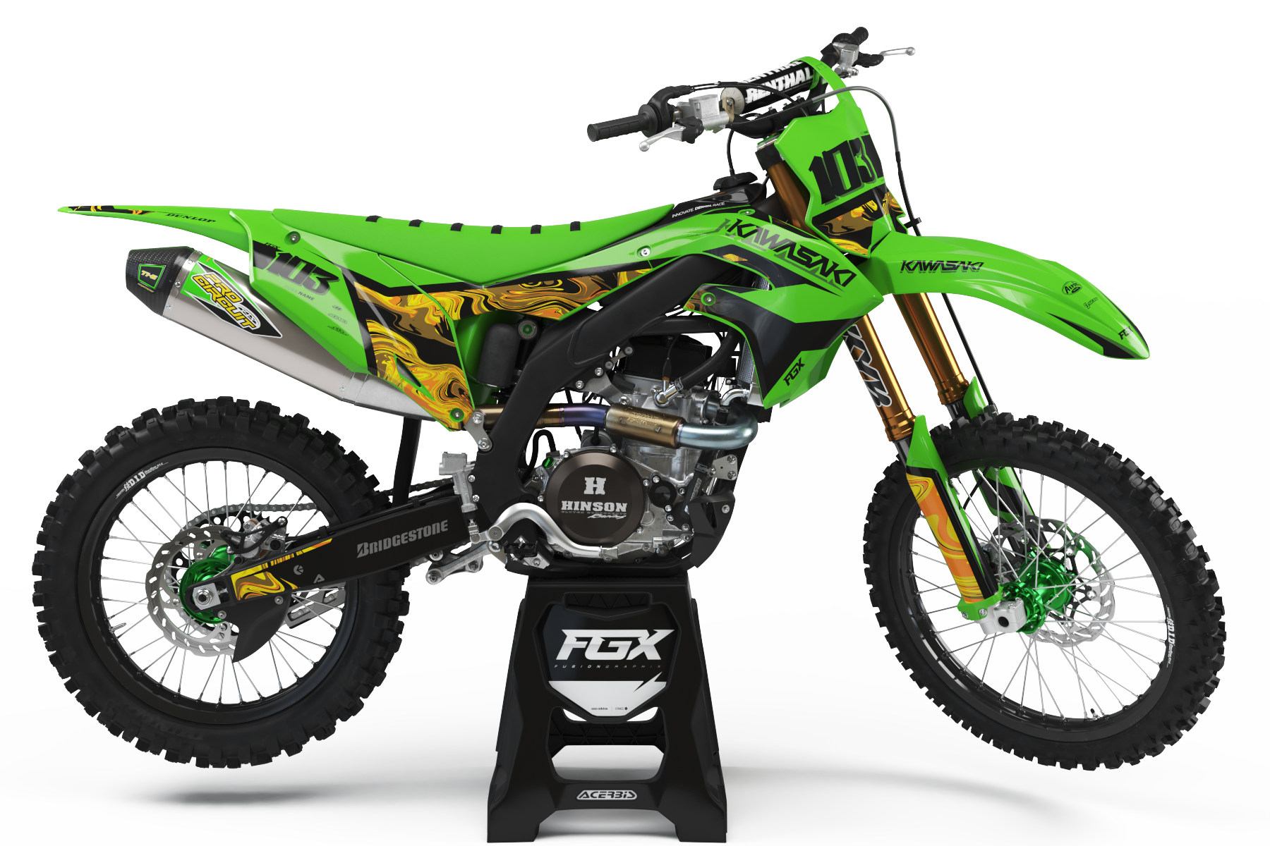 Fully Customisable Kawasaki Dirt Bike Graphics Kit Wild Add Name Number And Logos Motocross Bikes Motorcross Bike Kawasaki Dirt Bikes